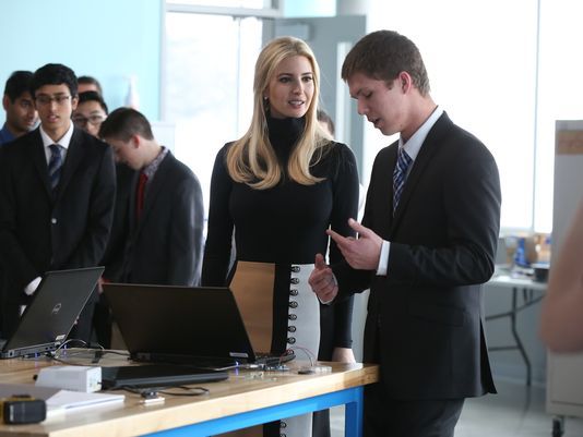 Ivanka manifestó “mientras embarcamos en la cuarta revolución industrial, es crítico que la trayectoria cambie y que más mujeres y jóvenes féminas se envuelvan en estos campos importantes, lucrativos y de alta paga del futuro.