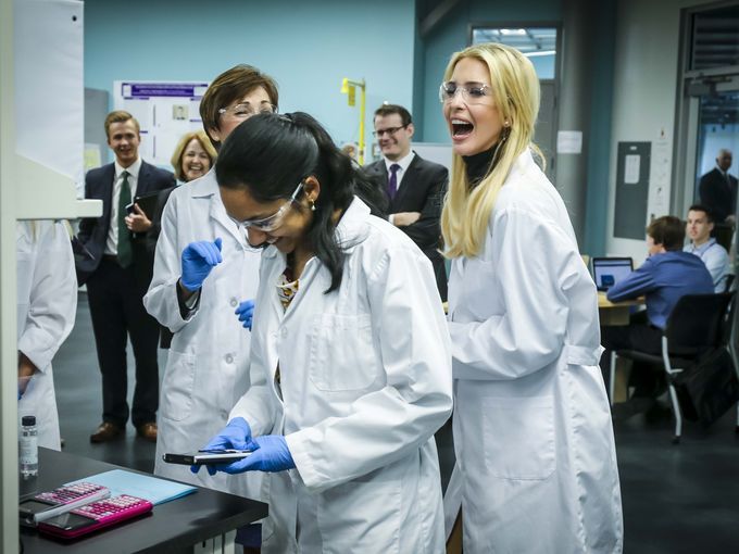 Ivanka dos veces enfatizó en la mesa redonda su interés en que la mujer y gente de color persiga carreras de Ciencia, Tecnología e Ingeniería, también mostró su emoción en ver tantas mujeres estudiando en las clases que visitó.