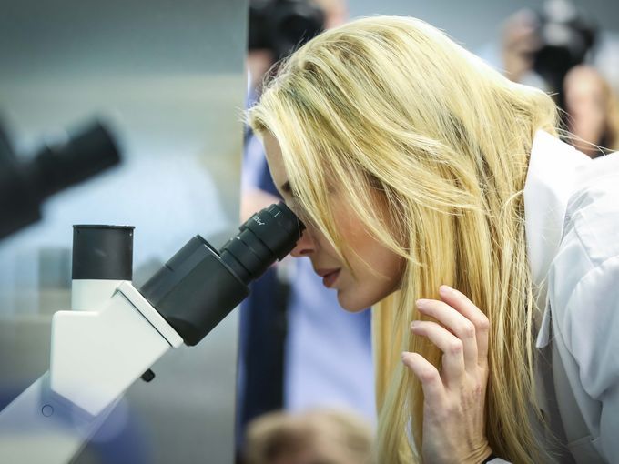 Como claramente Ivanka se envuelve completamente en el proceso, aquí Ivanka viendo en el microscopio.