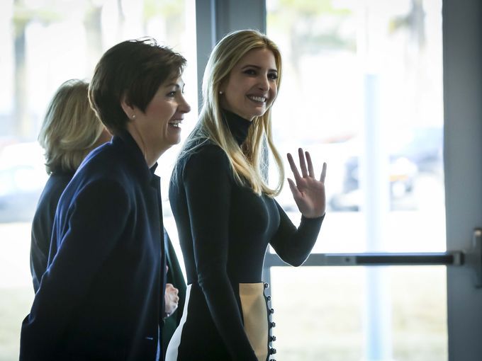 Ivanka sonríe con la Gobernadora después de que terminaron la mesa redonda.