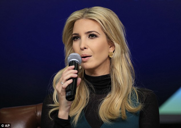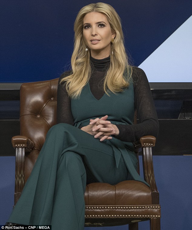 Después de que Ivanka habló se sentó para escuchar al Presidente Trump hablar.