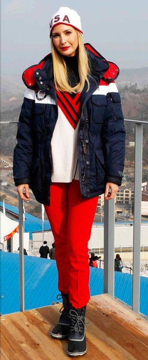 Ivanka tiene vestimenta para apoyar al equipo Estadounidense con un traje contra nieve.
