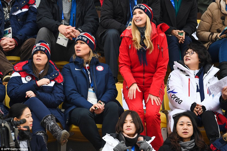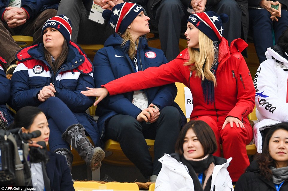 Ivanka habló con miembros de la delegación Estadounidense y Sur Coreana, además con la miembra de la comisión IOC y medallista de hockey Angela Ruggiero.