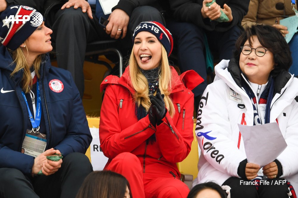 A las 11:00 Horas, el Sábado (en Corea del sur ya es Sábado) Ivanka vio la primera competición que fue “snowboard big air final” de hombres, que incluye tres competidores Estadounidenses , entre ellos está Red Gerard, quién proporcionó la primera medalla de oro a Estados Unidos hace dos semanas en “slopestyle”.