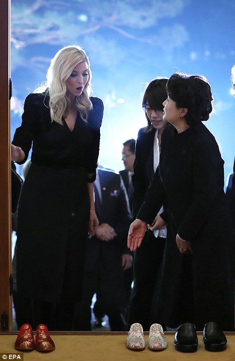A Ivanka se le pidió se quitase sus zapatillas antes de entrar a cenar ya que es una costumbre de muchos países orientales el quitarse los zapatos cuando entran a un restaurant o van a comer.