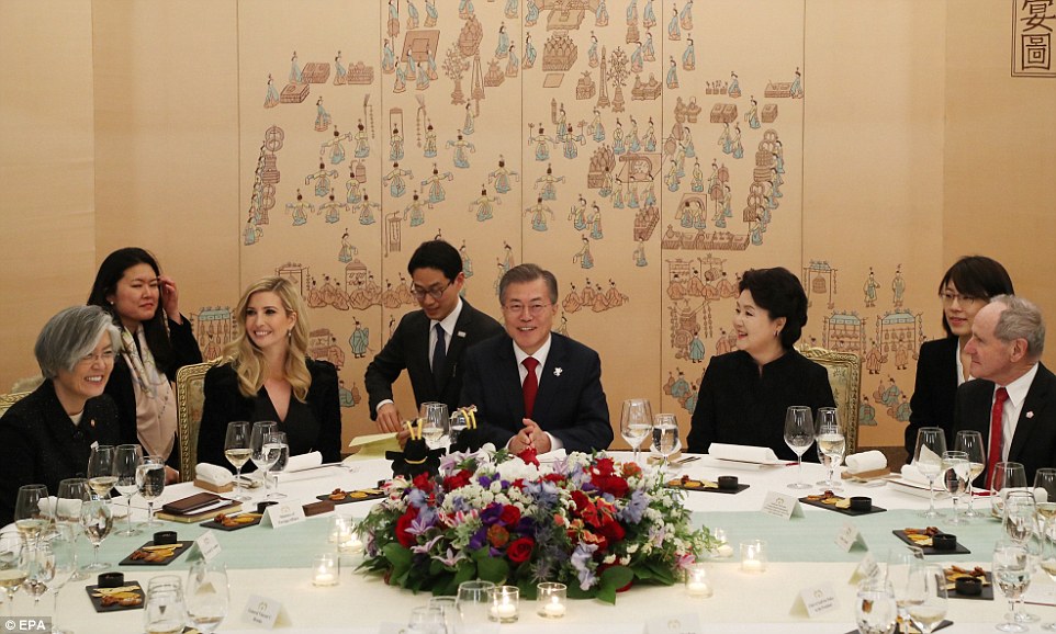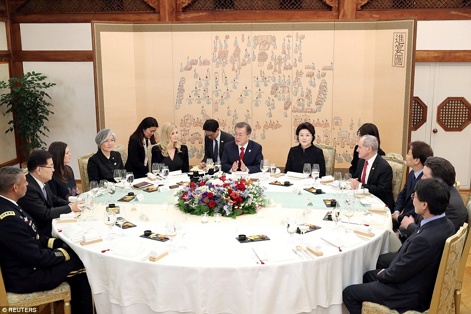 Nor Corea condujo docenas de lanzamientos el año pasado y tuvo su sexto y más grande prueba nuclear desafiando las resoluciones del Consejo de seguridad de la ONU, persiguiendo su meta de desarrollar un misil nuclear con capacidad de llegar a Estados Unidos, Estados Unidos defiende los programas de armamento como esenciales pero determina si los aprueba o no si son para agredir a Estados unidos.Ivanka fue Tratada Royamente en la Cena con el Presidente Sur Coreano
