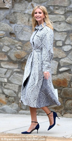 Ivanka salió muy sonriente a las cámaras, trae un saco que llega un poco más debajo de las rodillas con un patrón de colores azul marino y blanco y unas zapatillas de un color azul marino muy bonitas con una correa que sujeta el tobillo, su cabello lo trae suelto de manera que no interfiera con el vuelo ya que muy arreglado en un viaje de 13 horas y 35 minutos aproximadamente se arruina de seguro ya que forzosamente tiene que dormir en el vuelo.