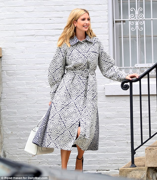 Ivanka salió de su mansión en dirección a la Casa Blanca aproximadamente a las 7:30 am dentro del vehículo del Servicio Secreto ya que estaba lloviendo muy duro .