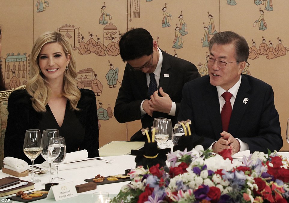 Ivanka estaba muy feliz sentada con el Presidente Sur coreano y su esposa.