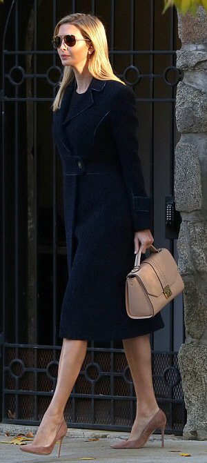Ivanka salió luciendo una Hermosa Bolsa de color al desnudo de su Increíble Línea Ivanka Trump que hacia juego con sus Zapatillas de cinco pulgadas de la marca Gianvito Rosi.