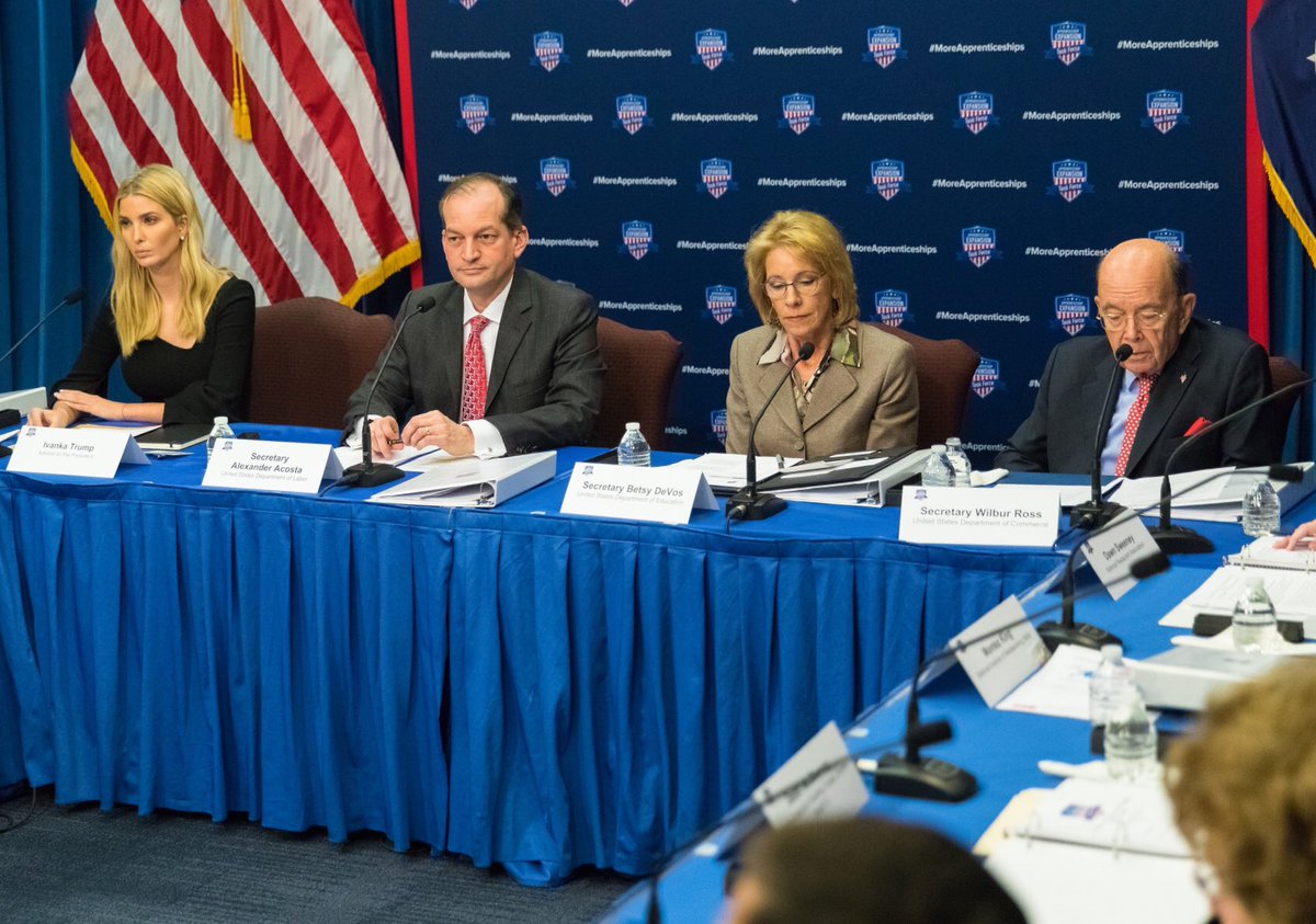 Ivanka se reunió con los Secretarios Alexander Acosta, Betsy Devos y Wilbur Ross para la inauguración de la junta en la Misión de Expansión de la Fuerza de Aprendizaje.
